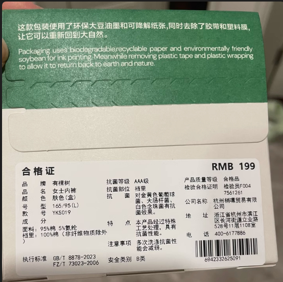 根据“有棵树”客服给记者提供的产品信息来看,这类产品品名为“女士内裤”,执行标准为国标GB/T 8878-2023《针织内衣》及纺织行业标准fz/t 73023-2006《抗菌针织品》。从产品形态和遵循标准来看,更接近抗菌针织内衣这一品类。且与上述杯、碟、条产品不同的是,月经内裤不能“单打独斗”,穿上它后,还需要搭配卫生巾、护垫等才能做到全方位保护,无法成为卫生巾的“替身”,只能当作辅助。