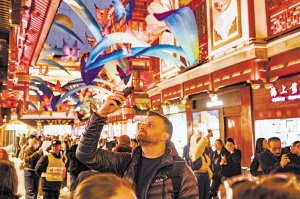 2024年12月4日,来自波兰的游客在上海豫园商城拍照。 新华社发