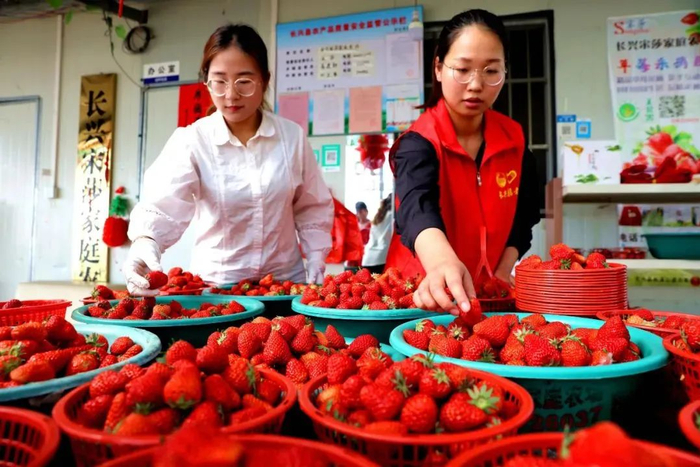 长兴宋莎家庭农场秉承“诚信为本、绿色生态、科技驱动、品牌打造”的经营理念,通过实行标准化生产、专业化管理、品牌化运营,应用物联网智能管理,建立质量可追溯体系,研发草莓干等深加工产品,采取线上线下并行营销模式,打造高品质草莓品牌,取得了经济效益与社会效益双丰收。