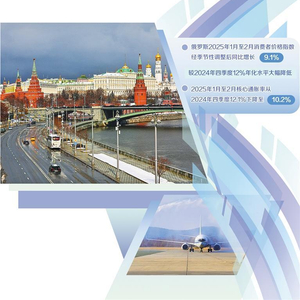 数据显示,俄罗斯2025年1月至2月消费者价格指数(CPI)经季节性调整后同比增长9.1%,较2024年四季度12%的年化水平大幅降低。2025年1月至2月核心通胀率从2024年四季度的12.1%下降至10.2%。根据俄央行的调查数据,2025年初俄罗斯国内需求增长放缓,企业价格预期和家庭通胀预期下降,通胀压力正在得到缓解。