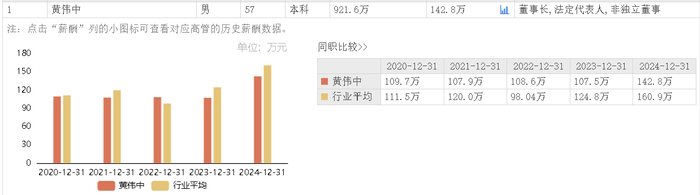 据东方财富网数据,亚太股份高管公开薪酬显示,公司董事长黄伟中2023-2024年所获薪酬分别为107.5万和142.8万元,涨薪幅度达32.84%。