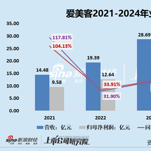 2021-2024年,爱美客的营收分别为14.48亿元、19.39亿元、28.69亿元、30.26亿元,分别同比增长104.13%、33.91%、47.99%、5.45%;归母净利润分别为9.58亿元、12.64 亿元、18.58亿元、19.58亿元,分别同比增长117.81%、31.90%、47.08%、5.33%。