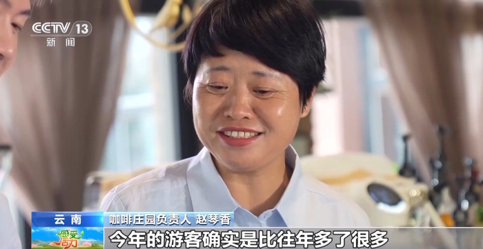 咖啡庄园负责人 赵琴香:整个庄园融入了一二三产业,客人到这可以从咖啡的采摘、加工、处理然后到研磨冲泡,整个流程都能体验到。每年的4月份,其实我们应该是进入稍微淡季,但是小粒咖啡的名声在外,今年的游客确实是比往年多了很多。