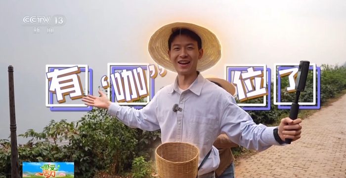 “小帽一戴,小筐一㧟,这‘咖’位立马就上来了。”主播还在这里体验了一下采摘咖啡豆、品尝咖啡鲜果。咖啡鲜果的果肉很薄,甜度十足,咖啡果皮还可以做成果皮茶。