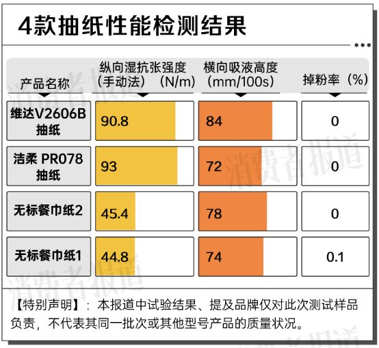 品牌抽纸、无标餐巾纸,哪款性能更好呢?