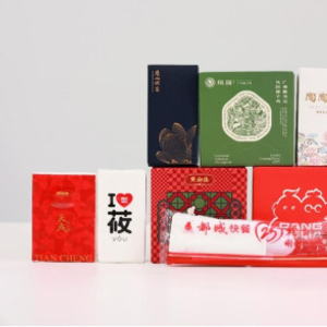 具有餐厅品牌标志的纸巾,通常包装较小,规格为1g~40g每包,餐厅会收取2元或3元一包费用,少数餐厅会免费提供。这些餐厅品牌纸巾包装通常是密闭或密封的,密闭包装可防止尘土、异物进入,如纸盒包装的纸巾;而密封包装要求更高,可防止空气、尘土、异物进入,如塑料真空包装的纸巾。