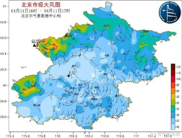 预计未来1小时大风区继续向东南方向扩展,将影响北京市昌平、房山、门头沟、怀柔地区,20时影响城区,阵风逐渐增大至8、9级,11日前半夜和12日白天为风力最强时段,全市平均风可达6级,平原地区阵风9~11级,西部、北部阵风11~13级,山区局地阵风13级以上。目前北京市处于大风橙色预警中。