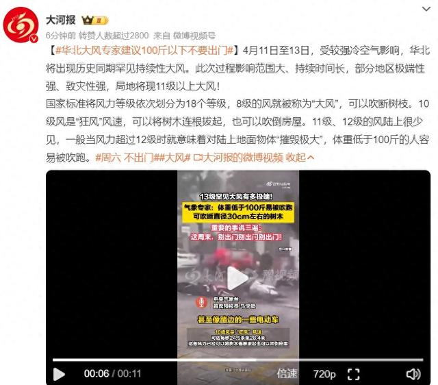 11日,话题#华北大风专家建议100斤以下不要出门#冲上热搜。