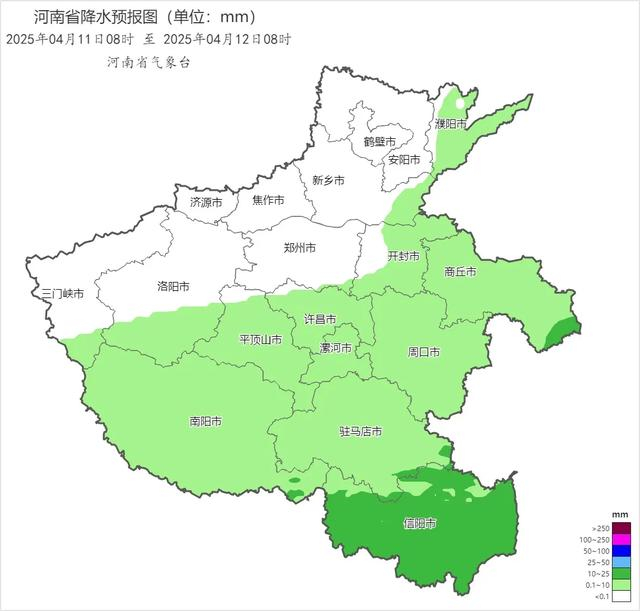 今天下午到夜里,全省阴天间多云,濮阳、新乡东部和黄河以南大部有分散性阵雨、雷阵雨,其中信阳、驻马店南部、商丘局部有中雨,并伴短时强降水、雷暴大风等强对流天气。