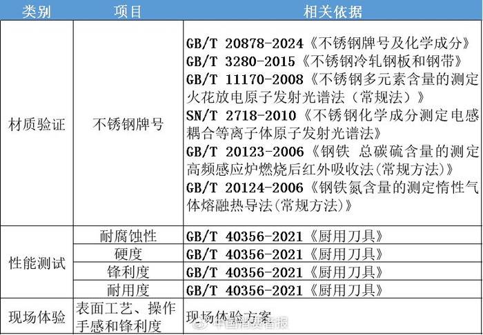 不锈钢厨用刀具比较试验项目及相关依据