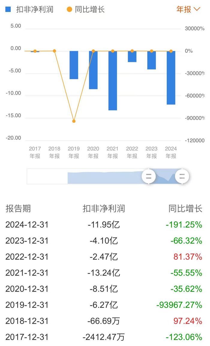 近几年,海南海药陷入营收下滑和扣非归母净利润连续亏损的境地。从2017年开始,海南海药扣非后净利润持续为负。