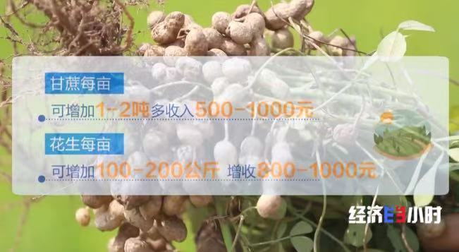 种植大户蒙毅广从2023年开始,尝试在甘蔗地里套种花生,每亩甘蔗地可套种大约0.5—0.6亩花生,能增收1500元左右。今年他2000多亩甘蔗地扩种花生,预计能增收300万元。