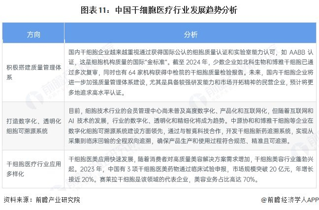 未来中国干细胞医疗行业将朝着更加规范化、数字化和多元化的方向发展。企业将加强质量管理体系建设,尤其是追求国际认证以提升产品竞争力;同时,随着互联网和AI技术的发展,数字化和透明化的细胞可溯源系统将成为行业新标准,确保全程规范和可追溯。干细胞医疗的应用领域也将日益多样化,以医美行业为例,干细胞美容的需求将进一步增长,推动市场持续扩展。