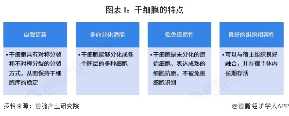 干细胞具有自我更新、多向分化潜能、低免疫原性和良好的组织相容性等特点。