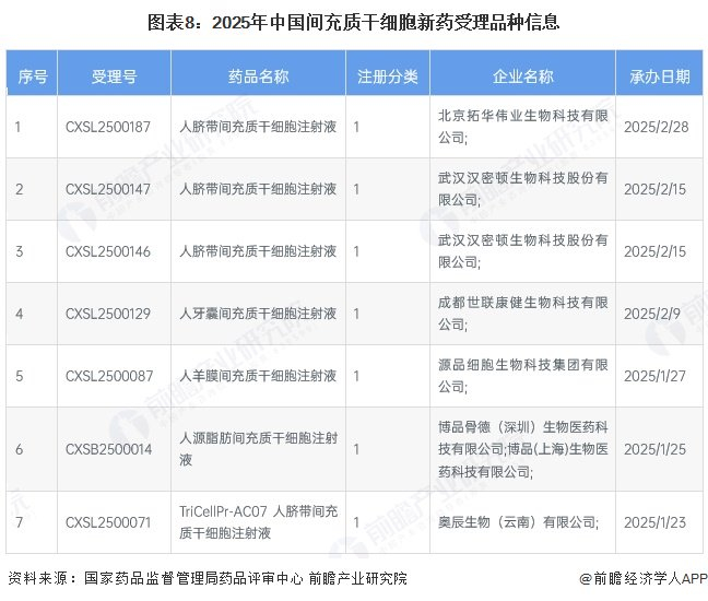 2025年1月1日至3月22日,有7款干细胞药物被CFDA正式受理。