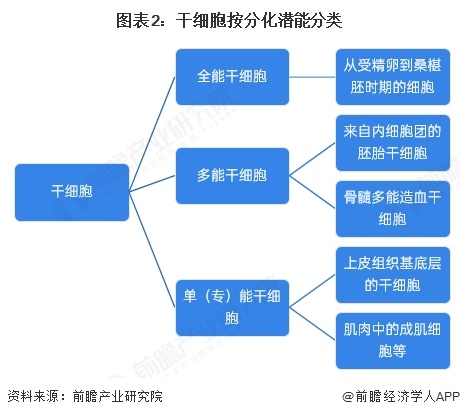 干细胞广泛存在于机体各组织器官中,如骨髓、外周血、早期胚胎以及成年组织中。按其分化潜能划分,一般将干细胞划分为三种:全能干细胞、多能干细胞与单能干细胞。