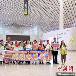 4月10日,深圳航空恢复开通深圳至湛江独飞航线。图为首航旅客。深圳航空 供图