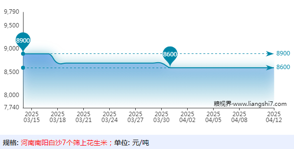 河南产区白沙米价格稳中微跌,普通麦茬米4.1-4.2元/斤,优质精选米4.4-4.5元/斤,农户低价不愿卖,市场成交零星;大花生米4.05-4.1元/斤,油厂压价导致贸易商利润“缩水”。