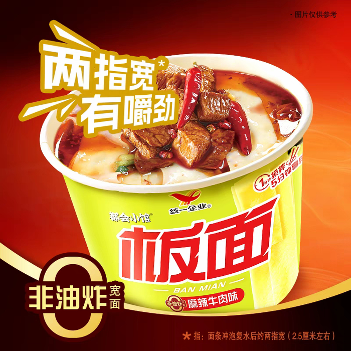 日前,统一在其官方旗舰店又上线了板面新品,并将其归属于“都会小馆”品牌旗下。统一板面新品主打非油炸概念,有三大卖点:一是面身两指宽,有嚼劲;二是食材丰富,整颗红辣椒香辣过瘾;三是还原地道板面风味,由纯正牛油熬制而成。目前,统一这款板面有麻辣牛肉味和卤香牛肉味两种口味,零售价为5元。