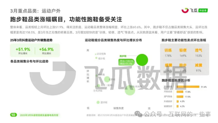 抖音电商3月表现抢眼,依托“38节”女性营销热点及春季上新趋势,多个品类迎来销售高峰。服饰内衣、大家电、摄影摄像设备、运动户外及防晒用品等需求激增,其中足部护理品类同比增长高达326.56%。带货直播成为核心销售渠道,品牌自营与达人合作双管齐下,有效提升了销售转化率。平台动态方面,巨量千川即将全面切换全域推广模式,商家体验分考核规则也新增商品综合评分,反映抖音电商在持续优化生态布局。随着4月营销热点的临近,品牌商家正蓄势待发。