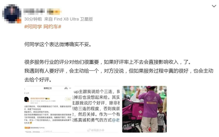 此外,还有人就其这一言论表示质疑,认为何同学作为互联网博主,希望大家给他的视频点赞、评论、关注,与网约车司机讨要好评性质相同。