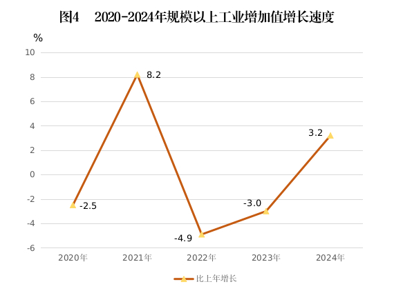 六大高耗能行业增加值比上年下降2.2%,其中,非金属矿物制品业下降1.6%,电力、热力生产和供应业增长7.5%,黑色金属冶炼和压延加工业增长3.6%,化学原料和化学制品制造业下降43.8%,有色金属冶炼和压延加工业增长3.7%。