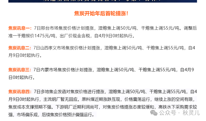 近期焦炭企业于7日提出焦炭首轮涨价计划,原定于9日落地执行。