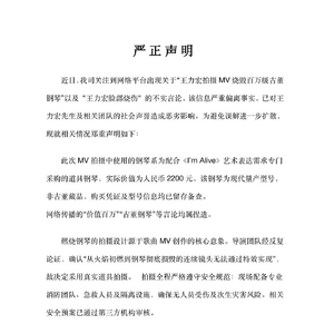 最近,有消息称,歌手王力宏在拍摄MV时突发意外,脸部被烧伤,百万级古董钢琴也被烧坏。12日,王力宏工作室发布严正声明:
