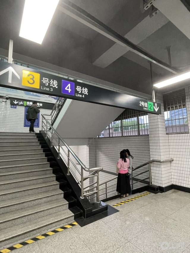 陈女士说,站外关于无障碍电梯在哪里的箭头标识不清,指示牌上标注了三条线路,但箭头只有一个,不太直接明了。当天,她是3号线换乘2号线,推着婴儿车乘坐电梯来到地面,看到指示牌上的箭头,差点又“原路返回”至3/4号线。