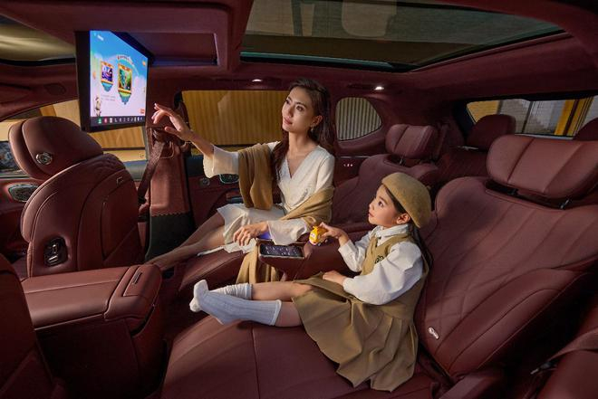 内饰大量采用软质材料包裹,四门饰板与副仪表台选用影木木皮装饰,搭配Alcantara全麂皮顶棚。二排双零重力座椅,搭配12向电动调节、一键零重力及同级唯一18点热石按摩。