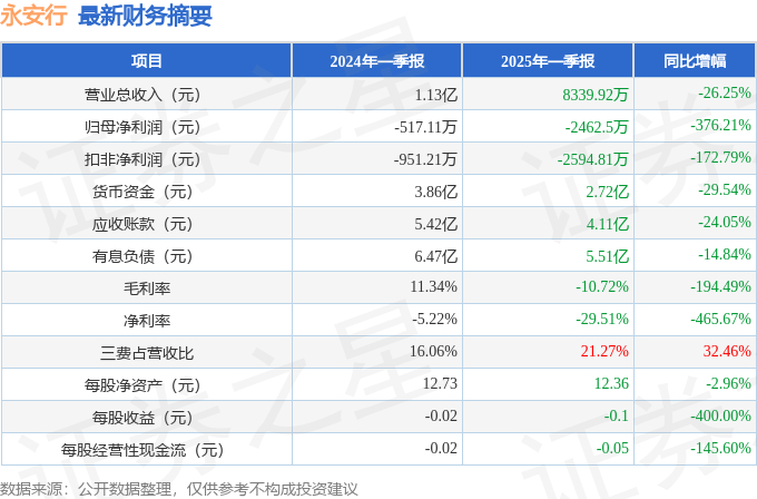 永安行2025年一季报简析:净利润减376.21%,三费占比上升明显