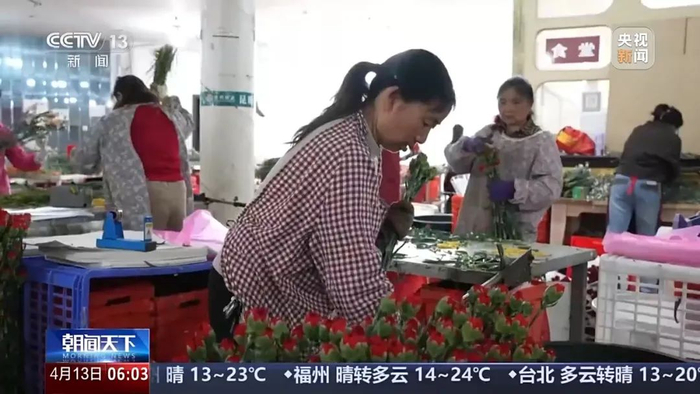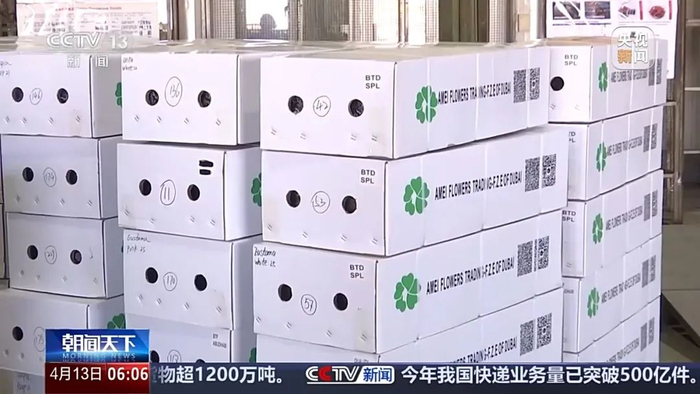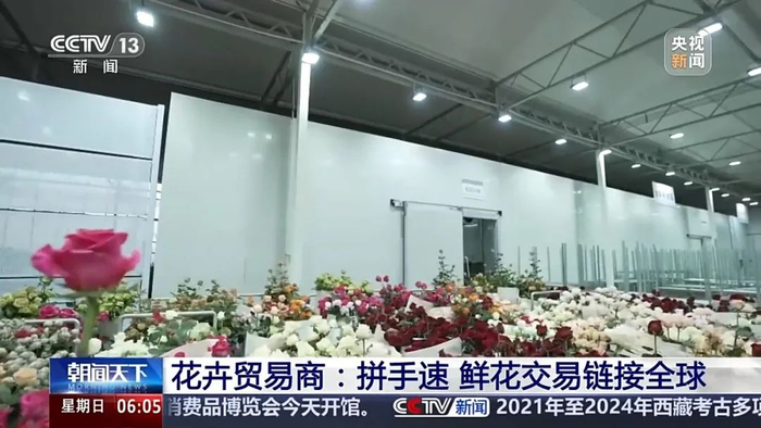 昆明长水机场海关口岸监管一科副科长 徐迈:我们开通绿色通道,每天验放玫瑰、康乃馨、月季等鲜切花超四万枝,销往菲律宾、阿联酋、马来西亚、新加坡等国家,确保云南鲜切花能够新鲜送达海外消费者的手中。