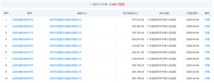 目前,索菱股份累计被执行总金额为6496.7万元。