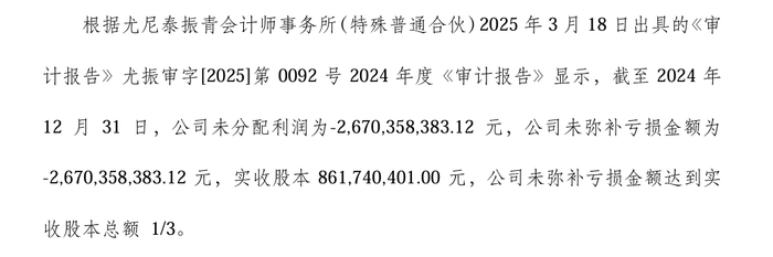 近日,索菱股份公告称,截至2024年12月31日,公司未弥补亏损金额为-26.7亿元。
