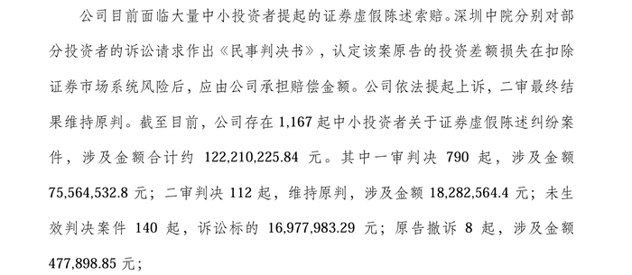 另需注意的是,索菱股份诉讼缠身。3月19日,索菱股份公告称,公司面临大量中小投资者提起的证券虚假陈述索赔,目前存在1167起中小投资者关于证券虚假陈述纠纷案件,涉及金额合计约1.22亿元。