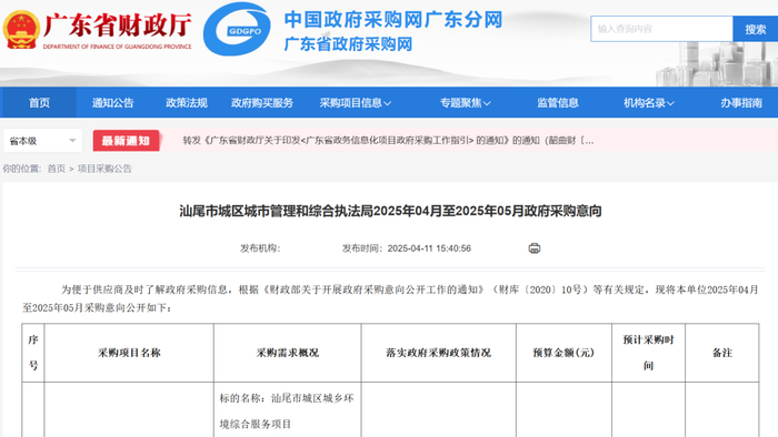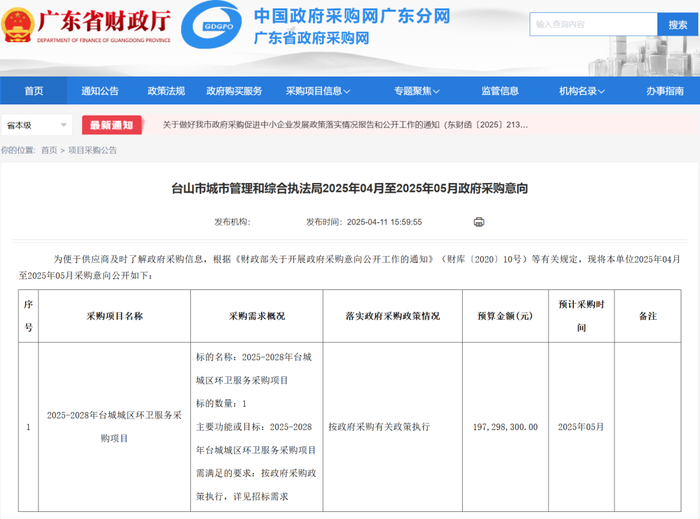 环卫在线网讯,2025年4月7日-4月13日,广东省、广西壮族自治区、江苏省、河南省、湖南省分别释放若干环卫服务项目政府采购意向,预算费用超24亿元,一起来看看吧!