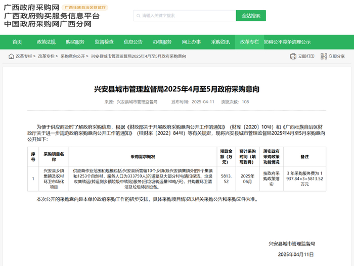 1、兴安县乡镇集镇及农村环卫市场化项目