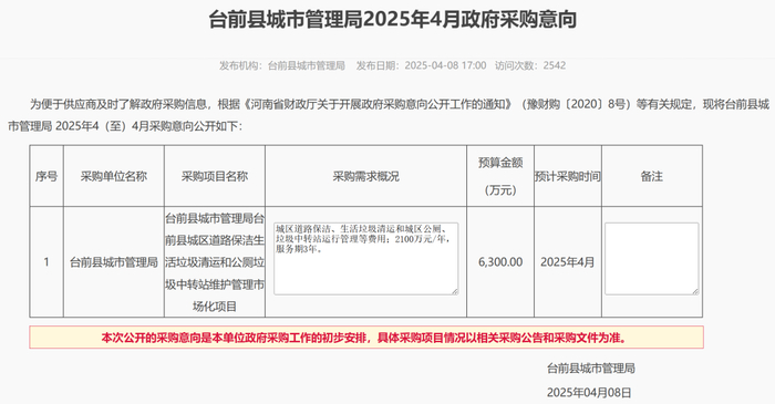 1、台前县城市管理局台前县城区道路保洁生活垃圾清运和公厕垃圾中转站维护管理市场化项目