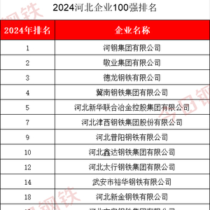 4月9日,河北省企业联合会发布2024河北企业100强和制造业企业100强两大榜单。钢铁行业作为河北省支柱产业,再次展现强劲实力,河钢集团、敬业集团、德龙钢铁三大龙头企业包揽双榜前三甲,36家钢铁企业入围百强榜单,充分彰显了钢铁产业作为河北省经济"压舱石"的重要地位。