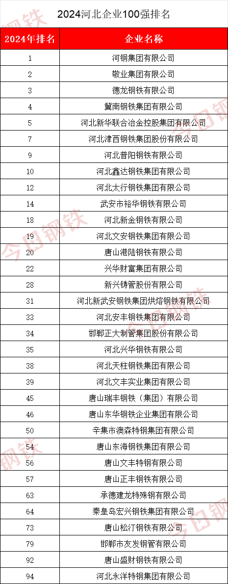 河北100强震撼发布!河钢、德龙、鑫达、冀南、东华、文丰、津西...