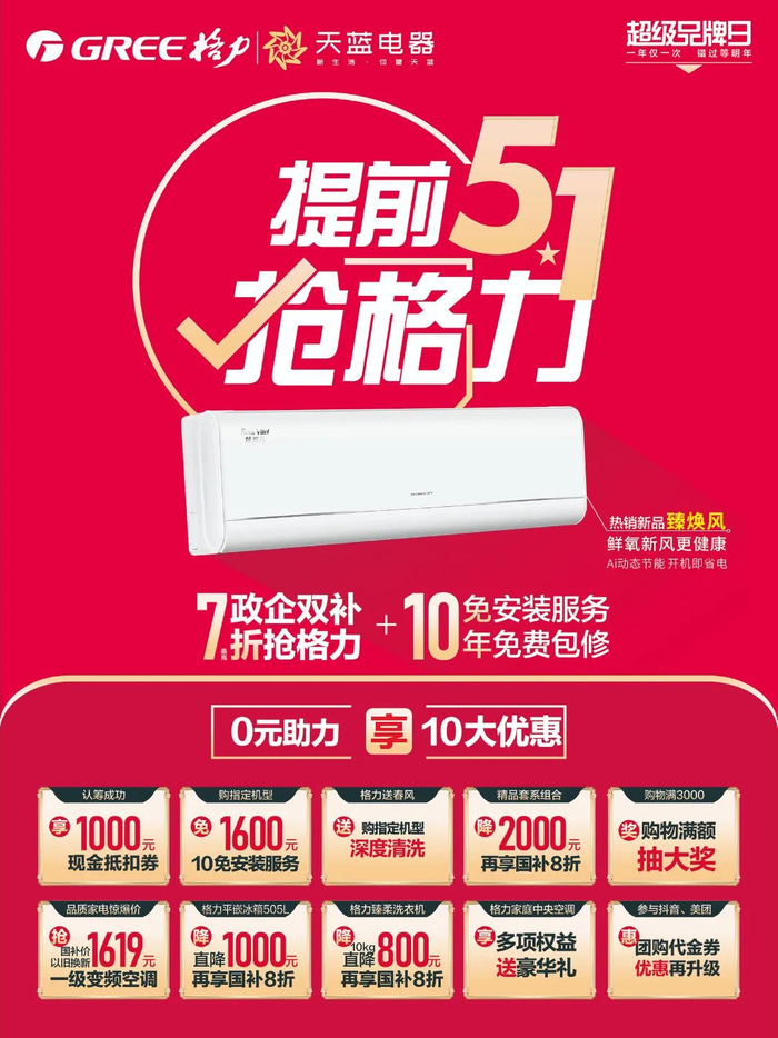 ⭐ 活动期间格力、松下电器、华为、万家乐等品牌底价放送