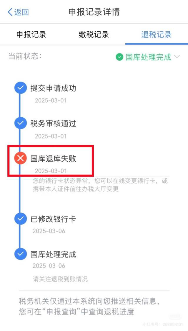 “国库处理中”表示税务机关已审核通过,并将您的退税申请提交国库,国库正在按规定处理,请耐心等待。处理完成后,税款将由国库退至您填写的银行账户。