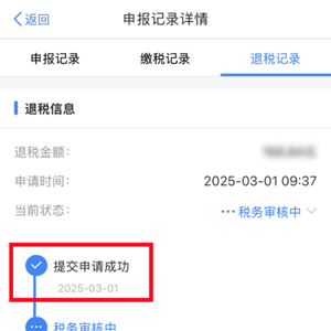 “提交申请成功”表示退税申请已经提交成功,将进入后续流程,请耐心等待。