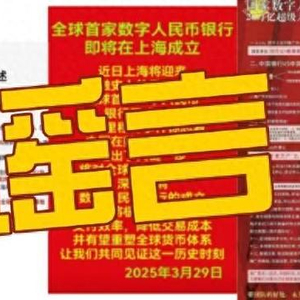 近期多个互联网平台出现“上海即将成立数字人民币银行”“招募数字人民币推广员”等信息。记者向中国人民银行数字货币研究所核实,上述信息均系谣言。