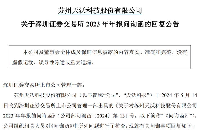 经过近一年时间,*ST天沃在撤销风险警示的同一天披露了年报问询函的回复公告。