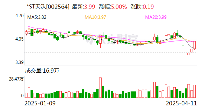 公告显示,公司股票交易自2025年4月15日开市起撤销“退市风险警示”及“其他风险警示”,股票简称由“*ST天沃”变更为“天沃科技”,证券代码仍为“002564”,股票交易价格的日涨跌幅限制由“5%”变更为“10%”。