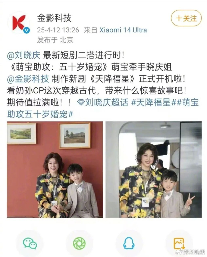 日前,刘晓庆发文称:我的第二部短剧《天降福星》再度与《萌宝助攻》的“萌宝”梦幻联动。