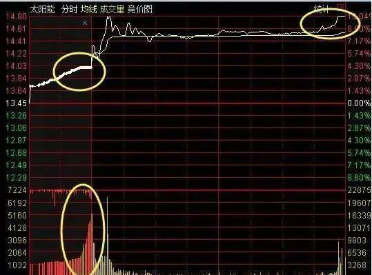 如下图所示,该股在9:20之前股价还是快速向下走的,9:20之后快速拉了上来,直至9:30正式开盘后,股价依然继续攀升。