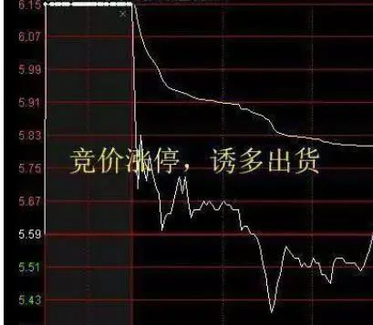 主力在集合竞价期间拉升到涨停,要么就是让散户在涨停板跟风挂单,随后主力突然撤涨停板的单。由于9:20分之后不能撤单,散户的单只能醒着头皮等开盘,然后大幅高开低走,让散户高位接盘,主力抛货。