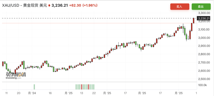 金价在4月11日创下新高,一度达到每盎司3245美元,此前在2日美国宣布加征关税后一度下跌5%。此次快速反弹主要缘于此前因股市抛售引发追加保证金而导致黄金被动抛售,如今多头回补带动了反弹。